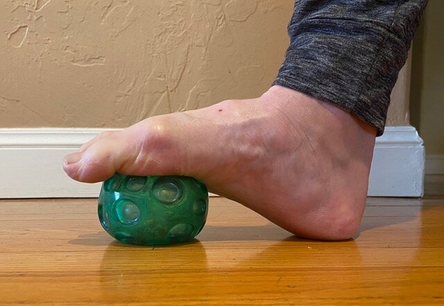 The short foot exercise, aka “doming” the foot (note that I am not gripping my toes!)